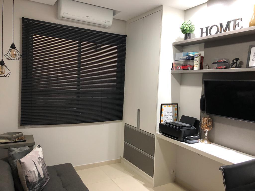 3 dormitórios sendo 1 suíte, sacada, sala de estar, sala de TV, cozinha planejada, lavanderia, 3 banheiros, banheiro de empregada, escritório, sauna, piscina, churrasqueira, quintal e garagem para 4 carros.